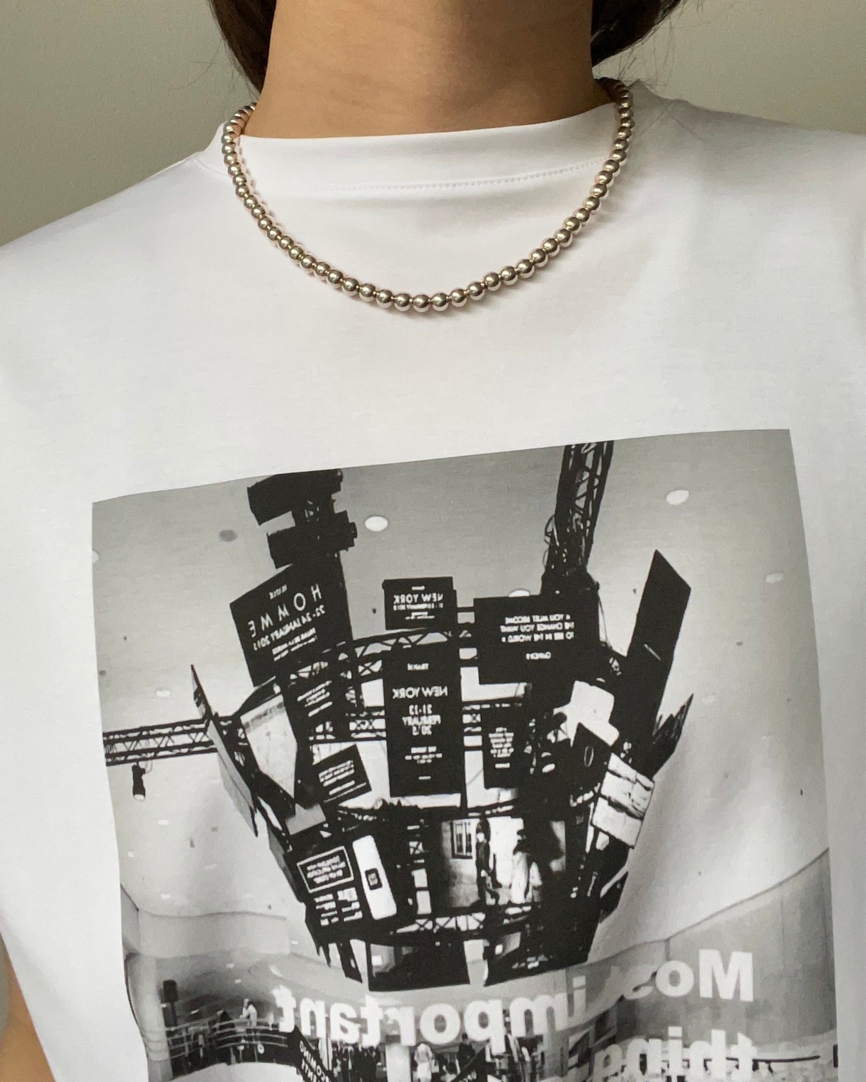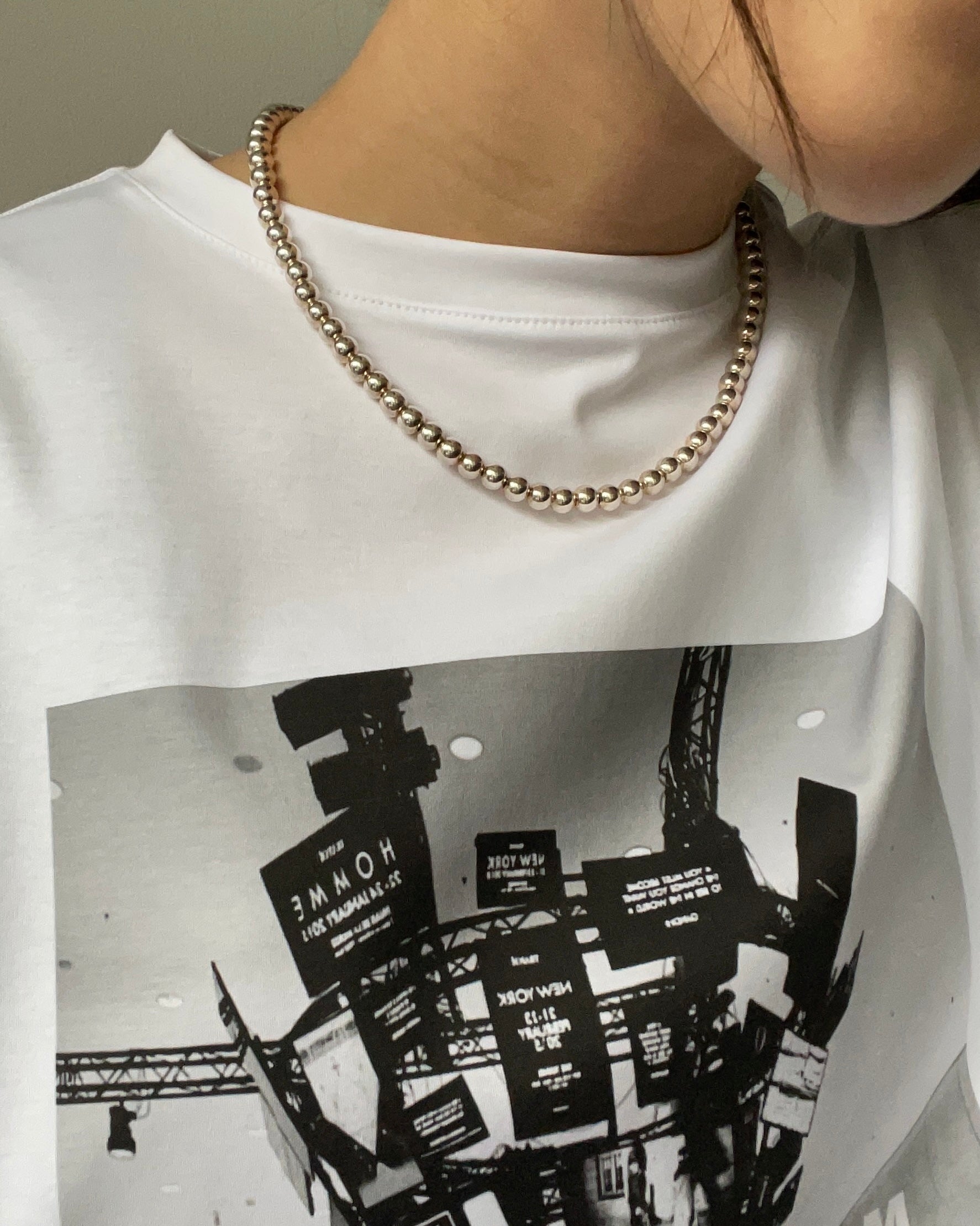 光を受けて美しく輝くシルバーが、首元に程よい存在感をプラスするネックレス。