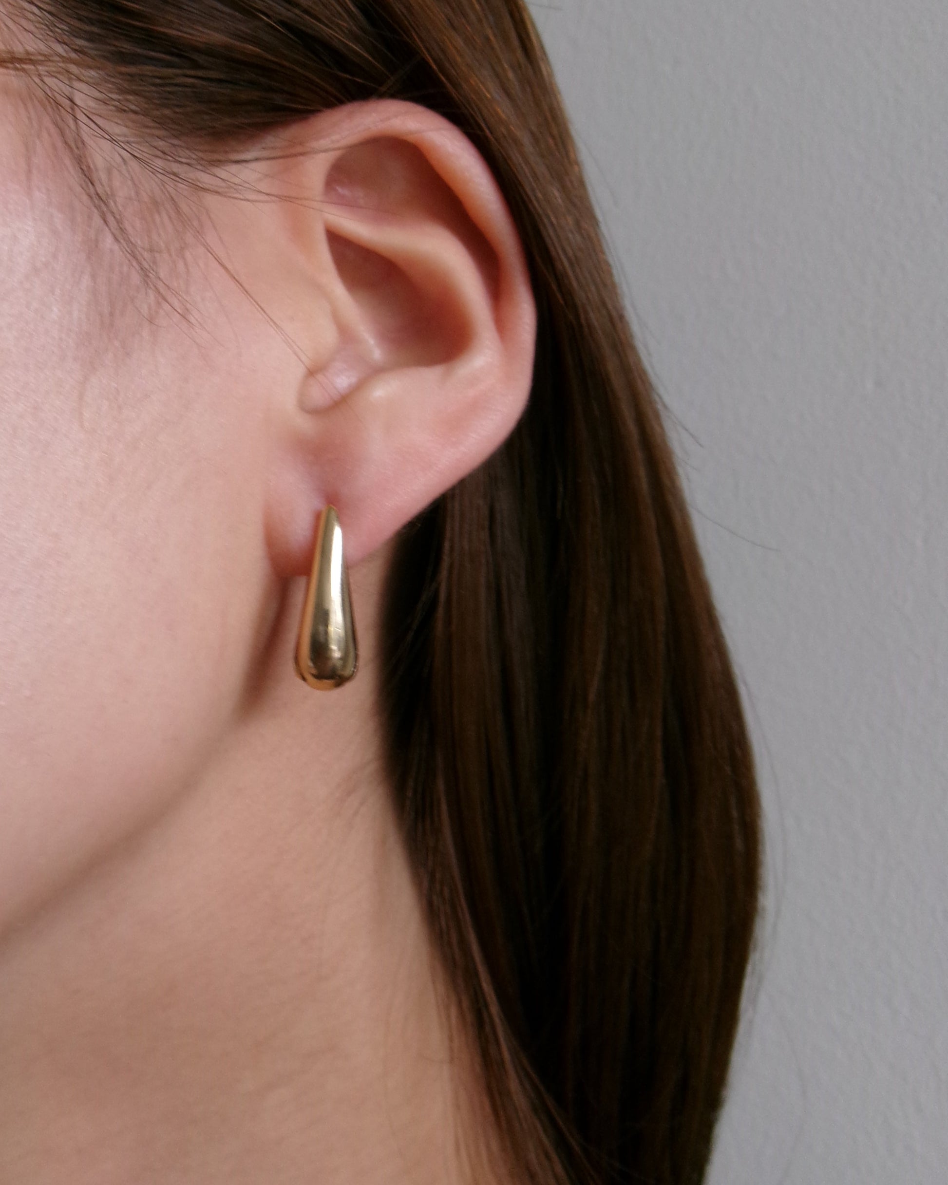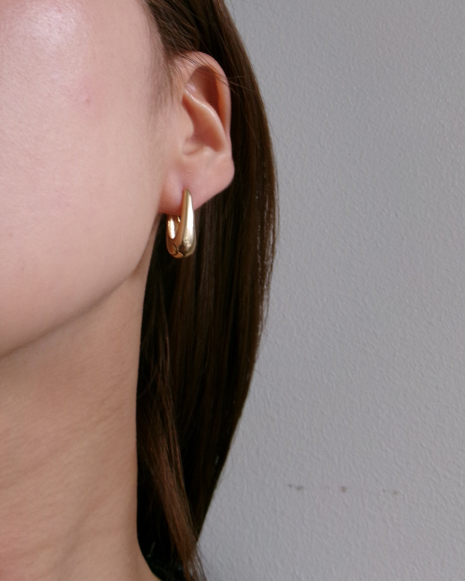 なめらかなカーブが魅力のミニマルなフープピアス。存在感がありながらも主張しすぎず、日常のスタイリングにすっと溶け込みます。
