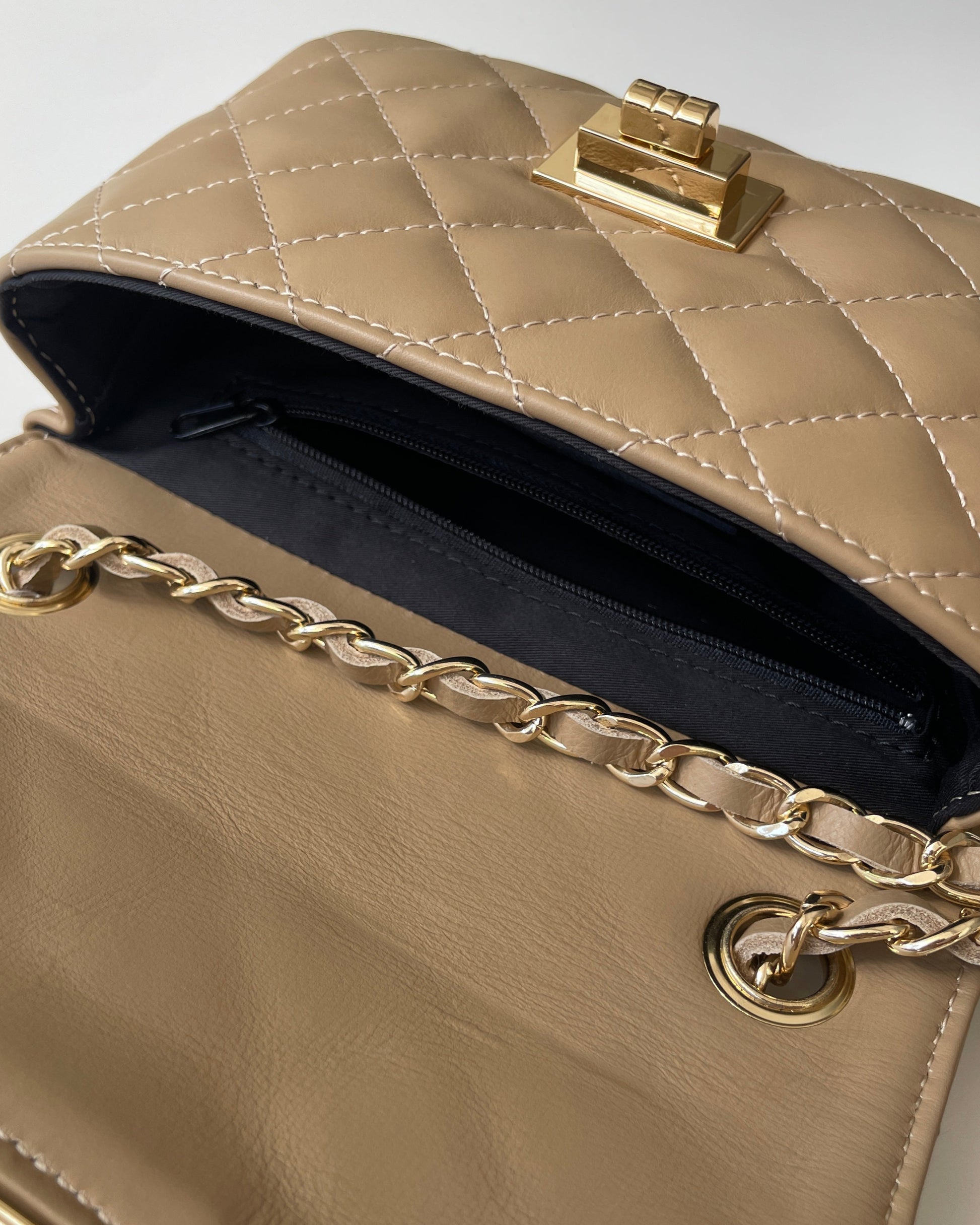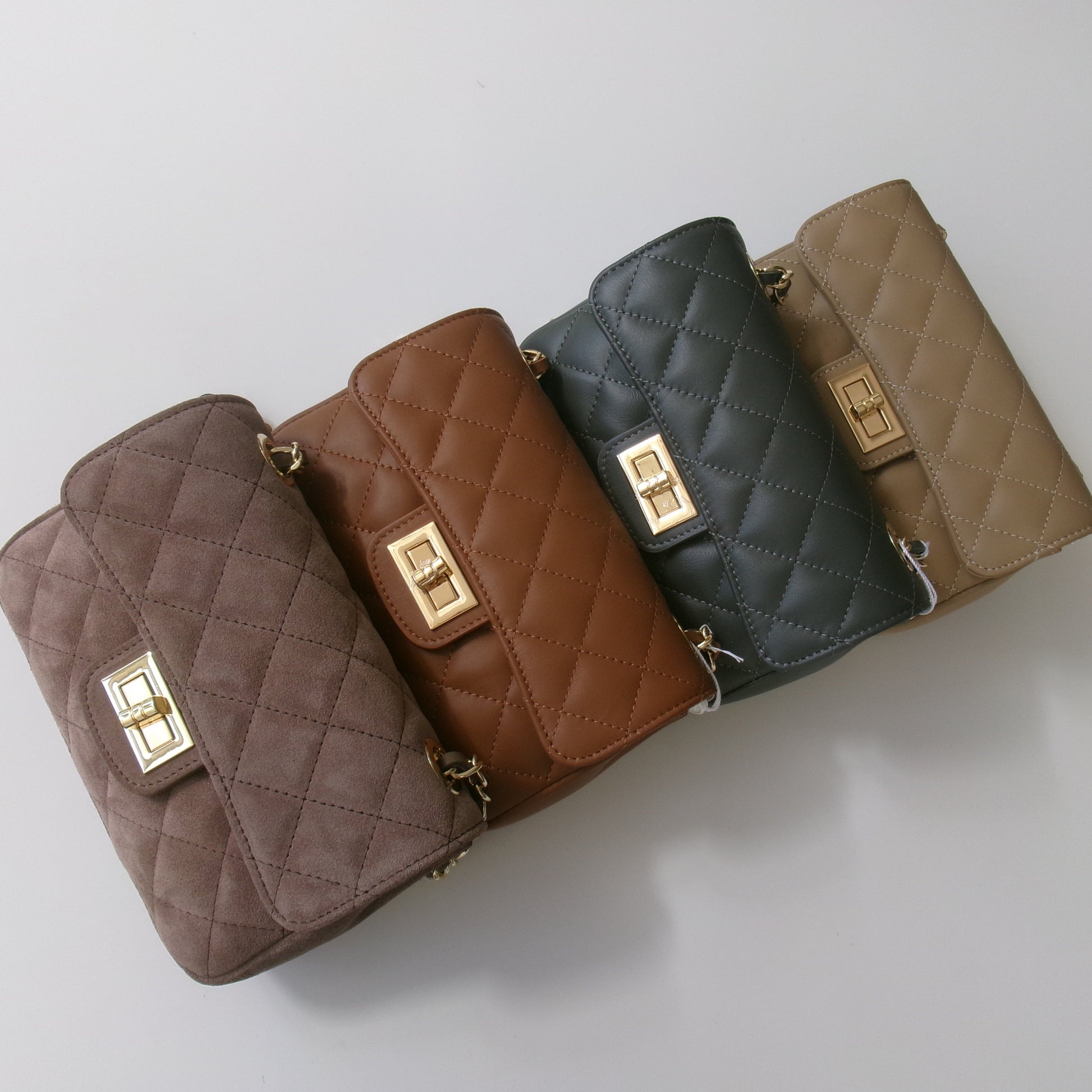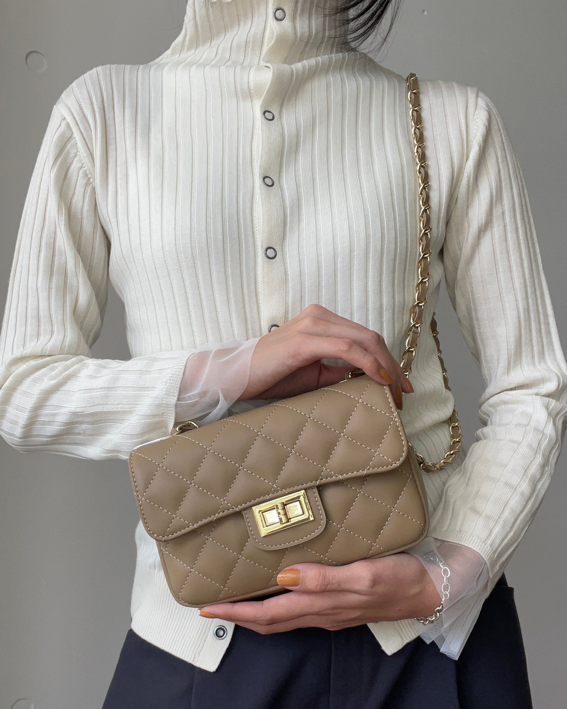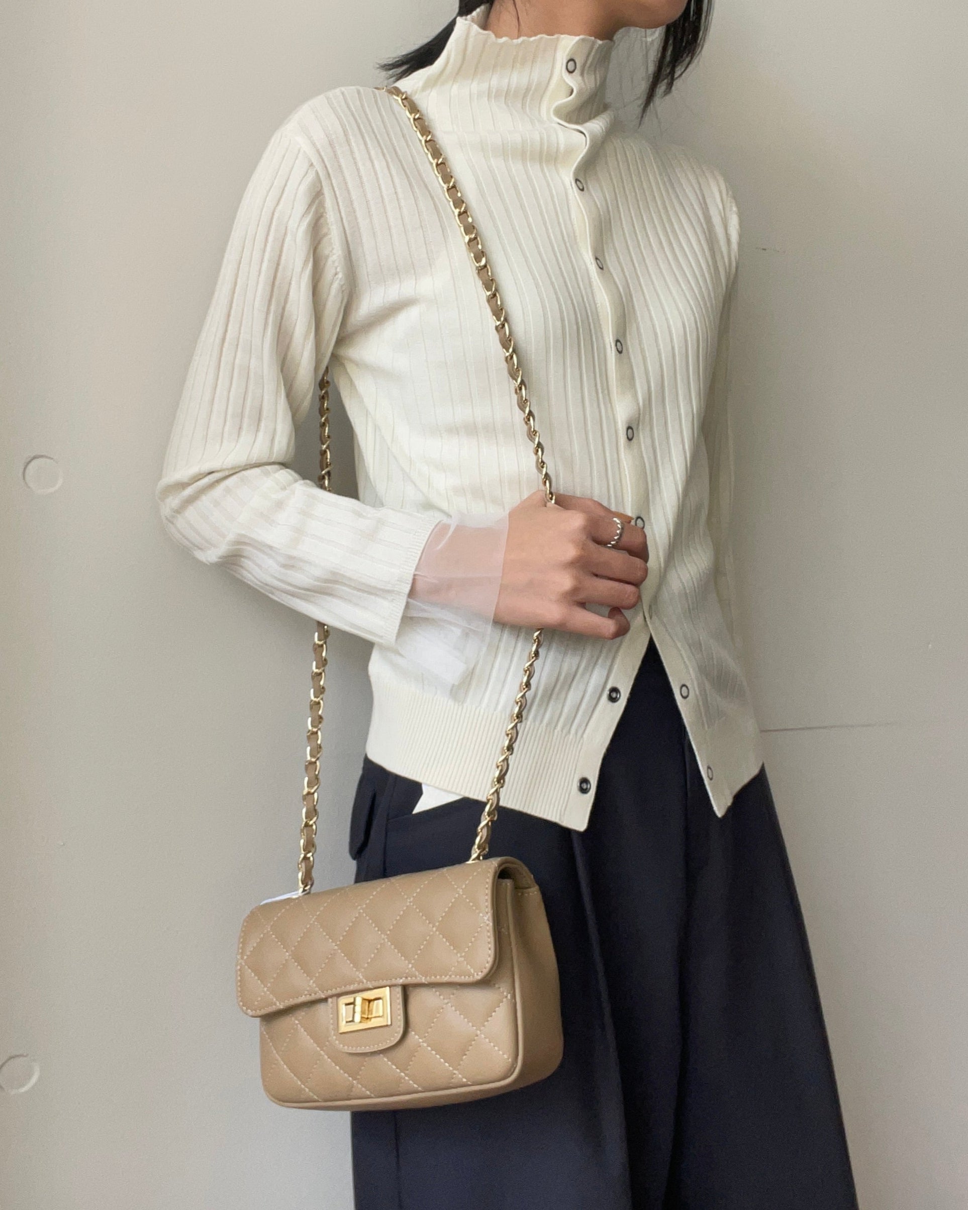 上品なキルティングデザインと、ゴールドチェーンが目を惹くショルダーバッグ。